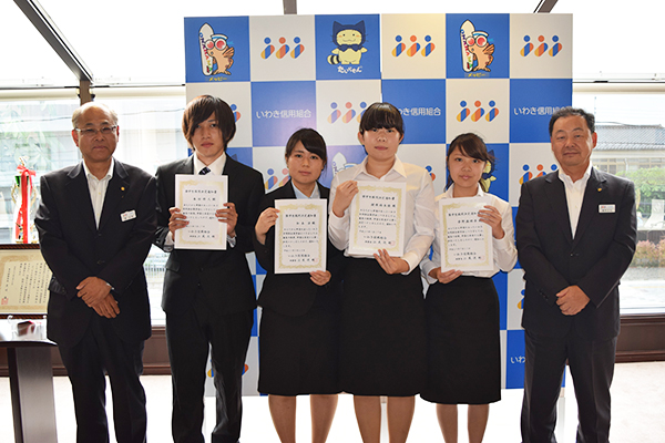 7月17日(金)、「いわき信用組合奨学金」の採用面接に合格した学生へ、当組合本部 理事長室において、奨学生採用決定通知書の授与を行いました。本年度は去る6月11日に採用面接を行った結果、いわき明星大学、東日本国際大学への入学生、福島高専4年生に進学した男女4人が採用されました。